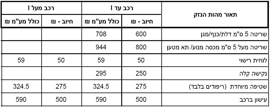 במקרה של נזק קטן ( מתחת לסכום ההשתתפות העצמית) הלקוח יחויב בהתאם לטבלה,